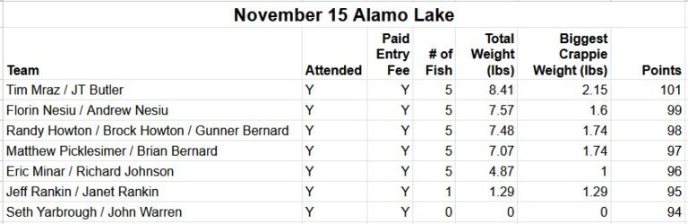- November 16, 2025 Alamo Lake – Veterans Tournament