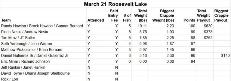- March 21, 2026 Roosevelt Lake